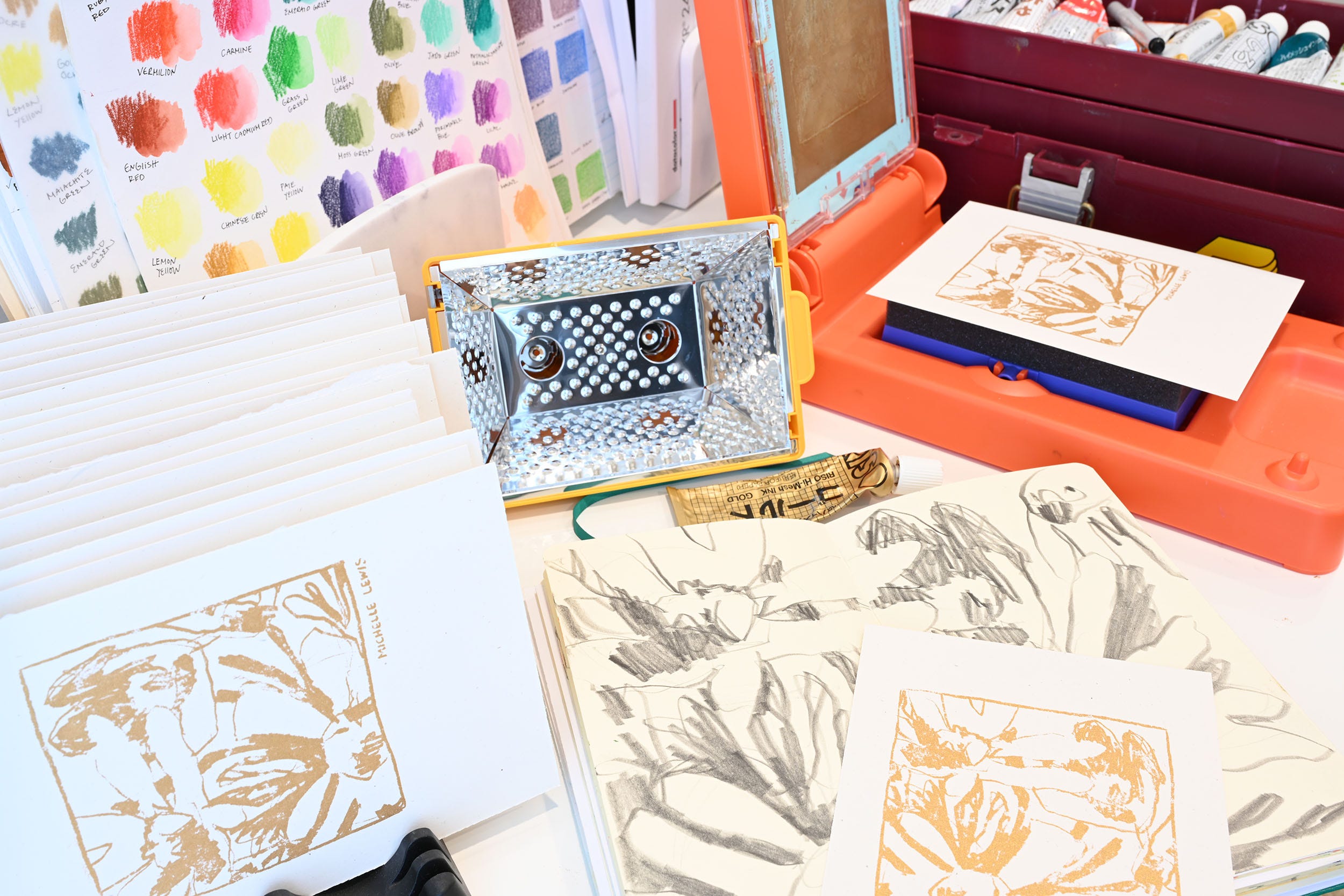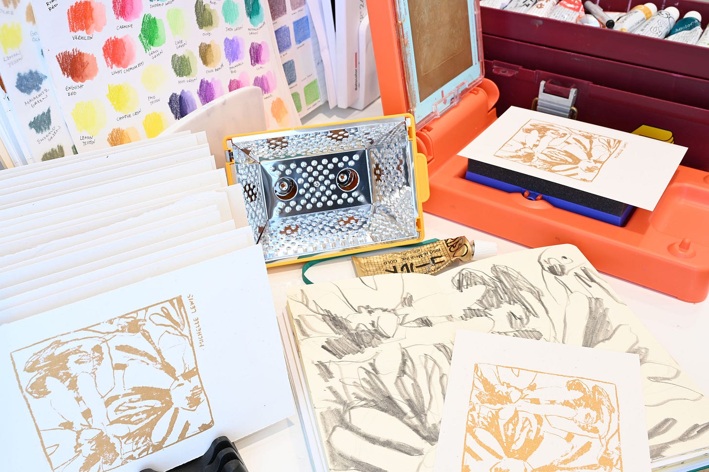 STUDIO UPDATE: This week I’ve been figuring out how I’ll be packaging my artwork for shipping. I want to include a handmade thank you card in each order, so I decided to make prints from one of my sketches using my gocco machine.