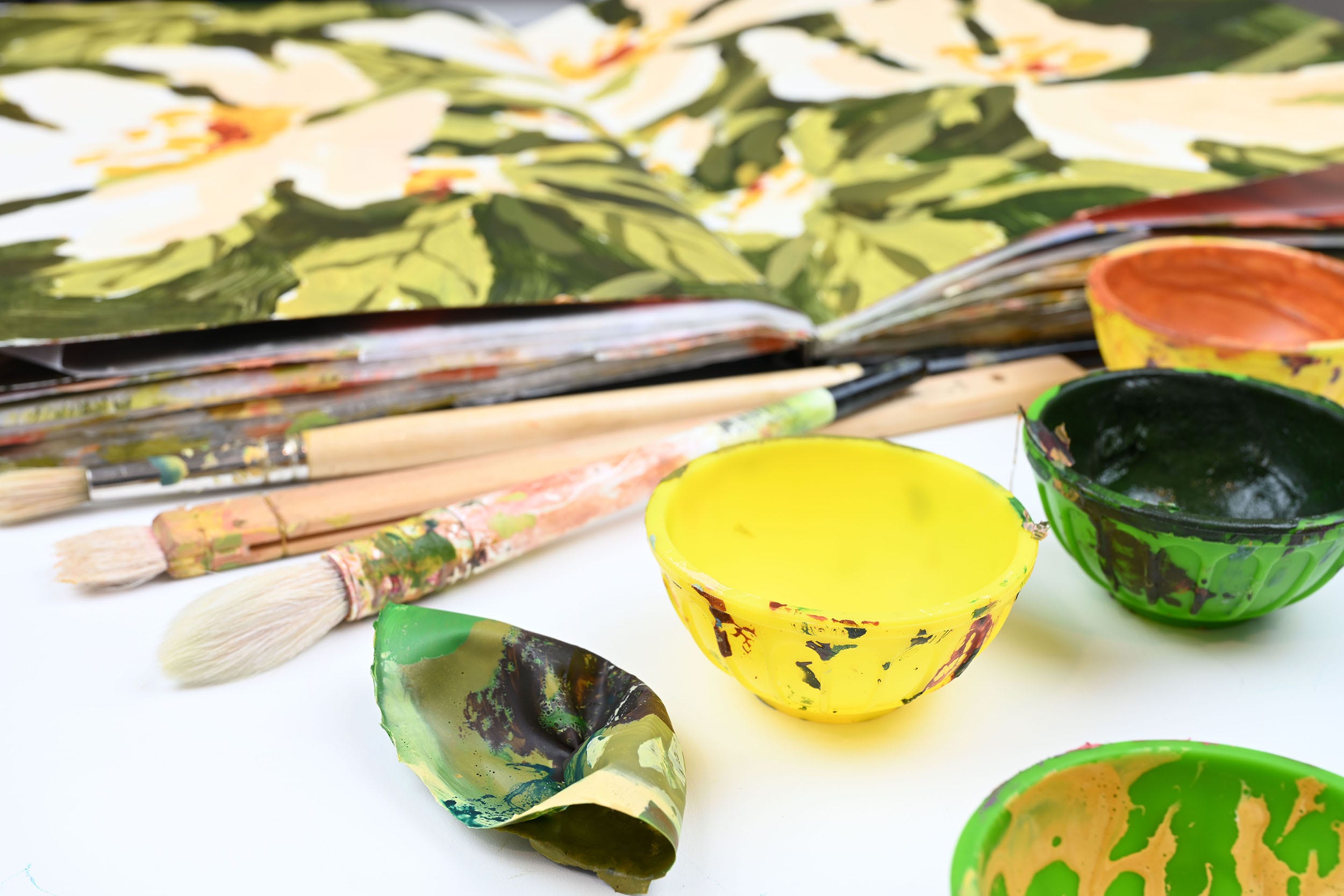 I don’t use a paint pallet—instead I prefer to mix my paint in these little bowls. Dry paint peels right off of the silicone surface so cleanup is easy—check out that chunk of paint on the far left to see what I mean.